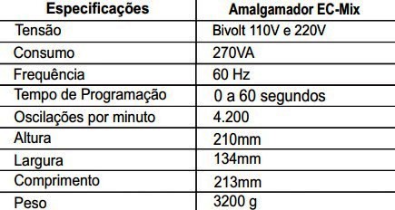 Aparelho tipo batedor universal para amálgamas e ionômeros em cápsulas pré-dosificadas, que dotado de um sistema operacional eficaz de trituração garante a perfeita homogeneidade e consistência da mistura.