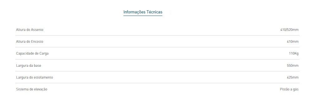 Possui ajuste de altura – assento com sistema central de elevação a gás através de alavanca lateral, promovendo movimentos suaves